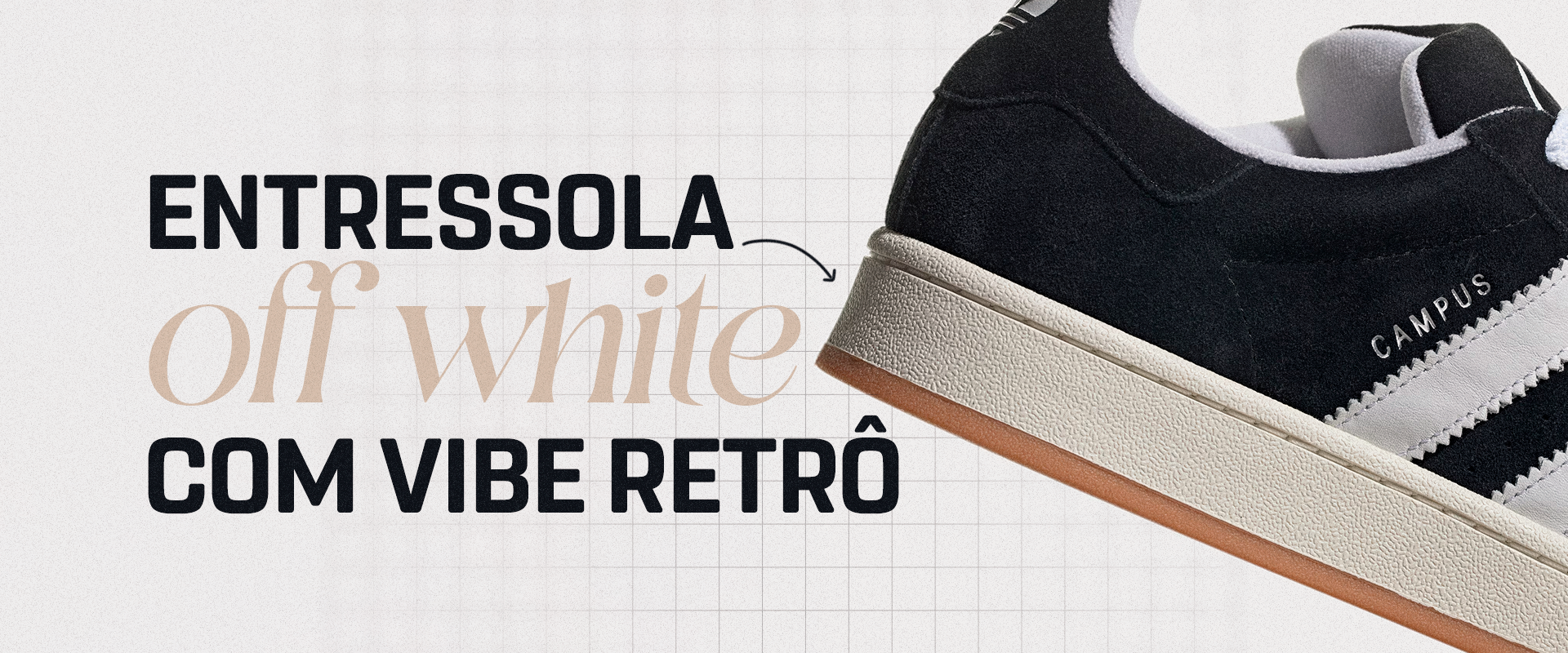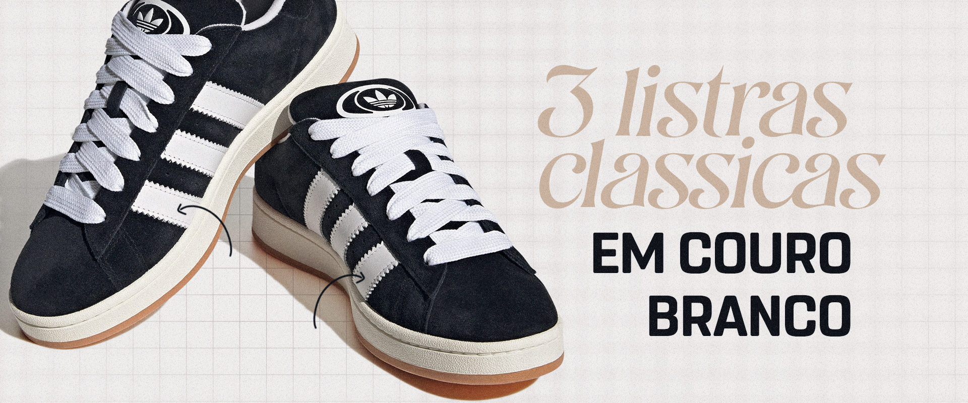 As icônicas três listras em couro branco contrastam de forma elegante com o preto intenso, agregando sofisticação ao visual minimalista. A entressola off white com acabamento vintage remete ao charme retrô, além de proporcionar suporte superior e uma estética clean que nunca sai de moda.