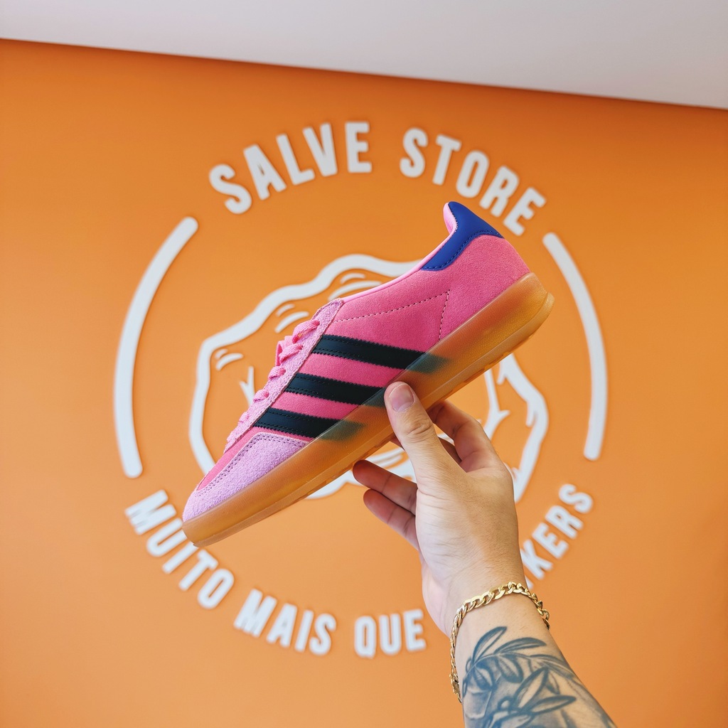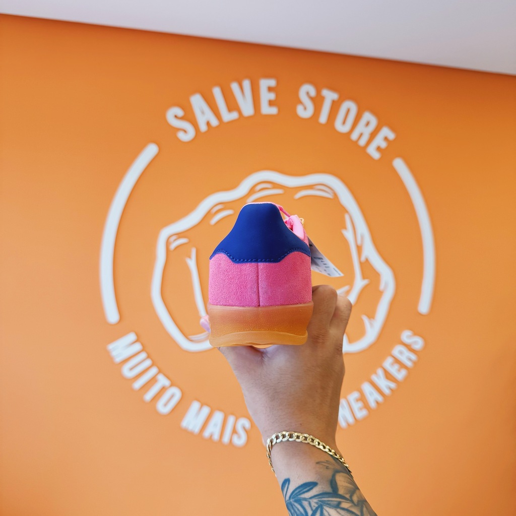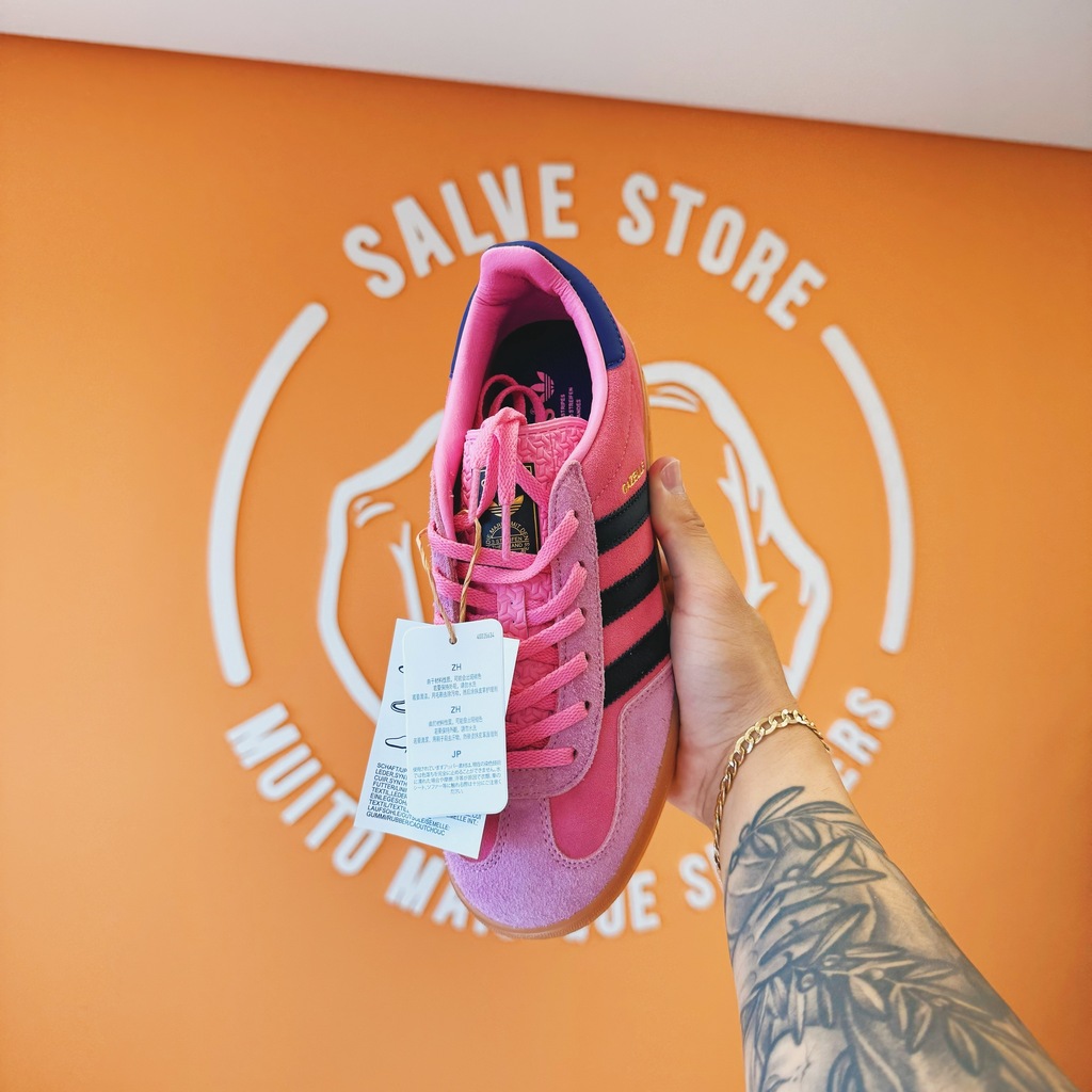 O Adidas Gazelle Indoor Bliss Pink Purple é a combinação perfeita de estilo vintage e modernidade, trazendo um toque retrô irresistível com seu design clássico de cano baixo.