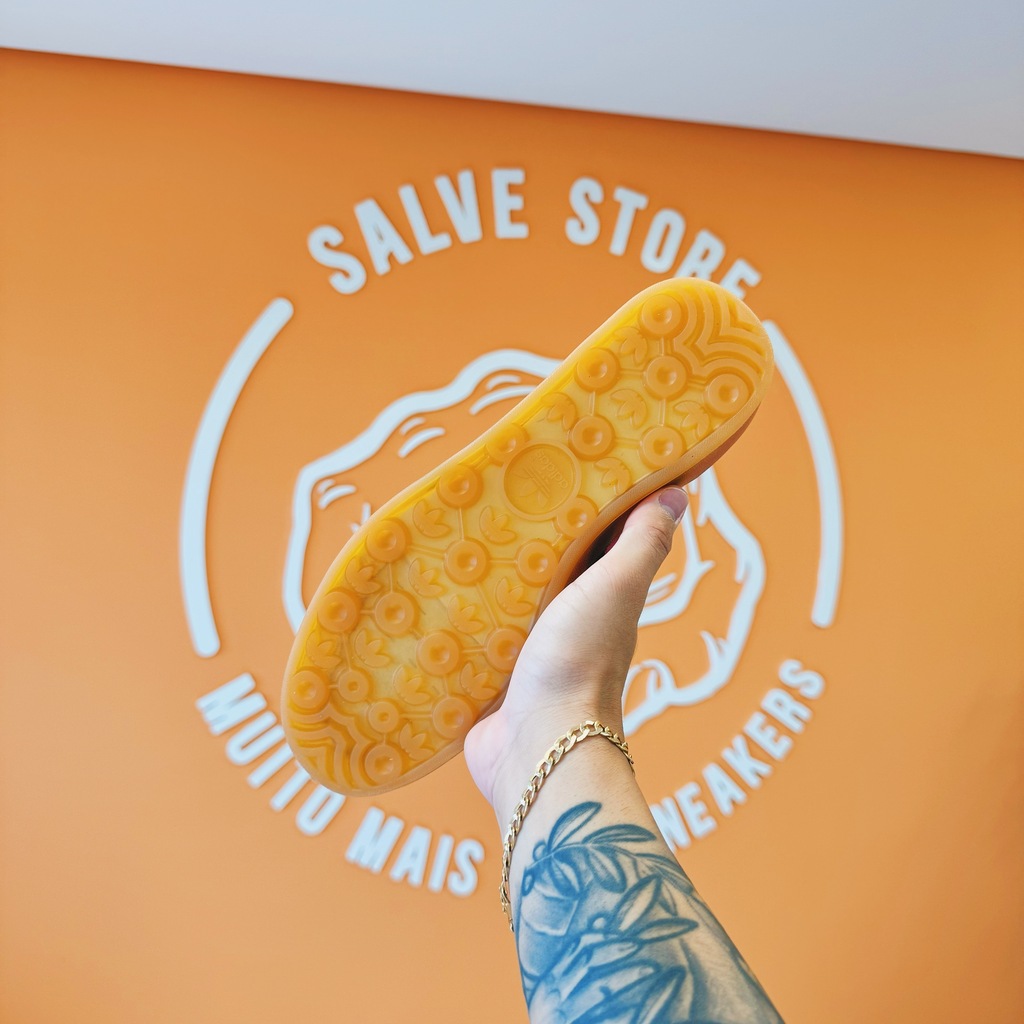O toque de luxo fica por conta do detalhe roxo na aba do calcanhar e o nome "Gazelle" bordado em dourado, adicionando uma pitada de exclusividade.