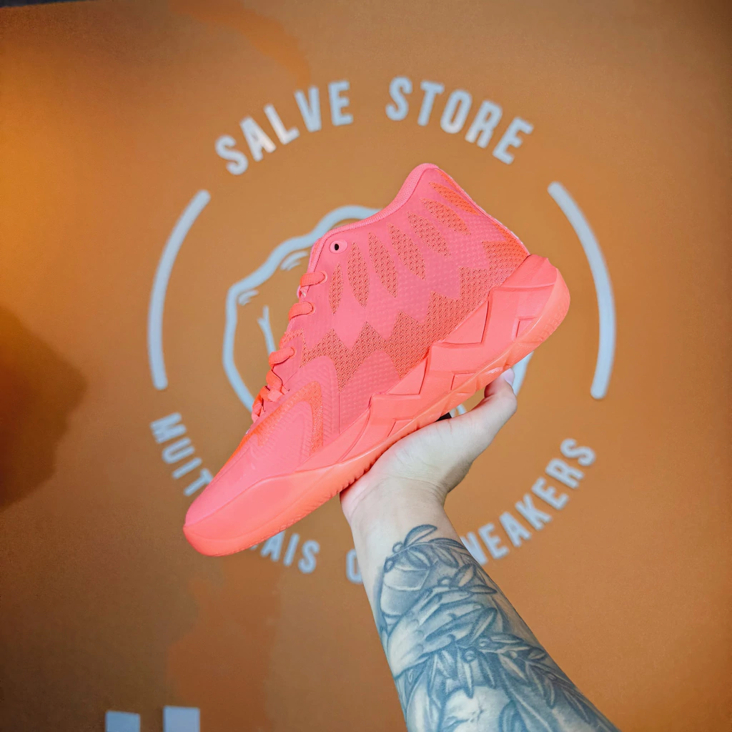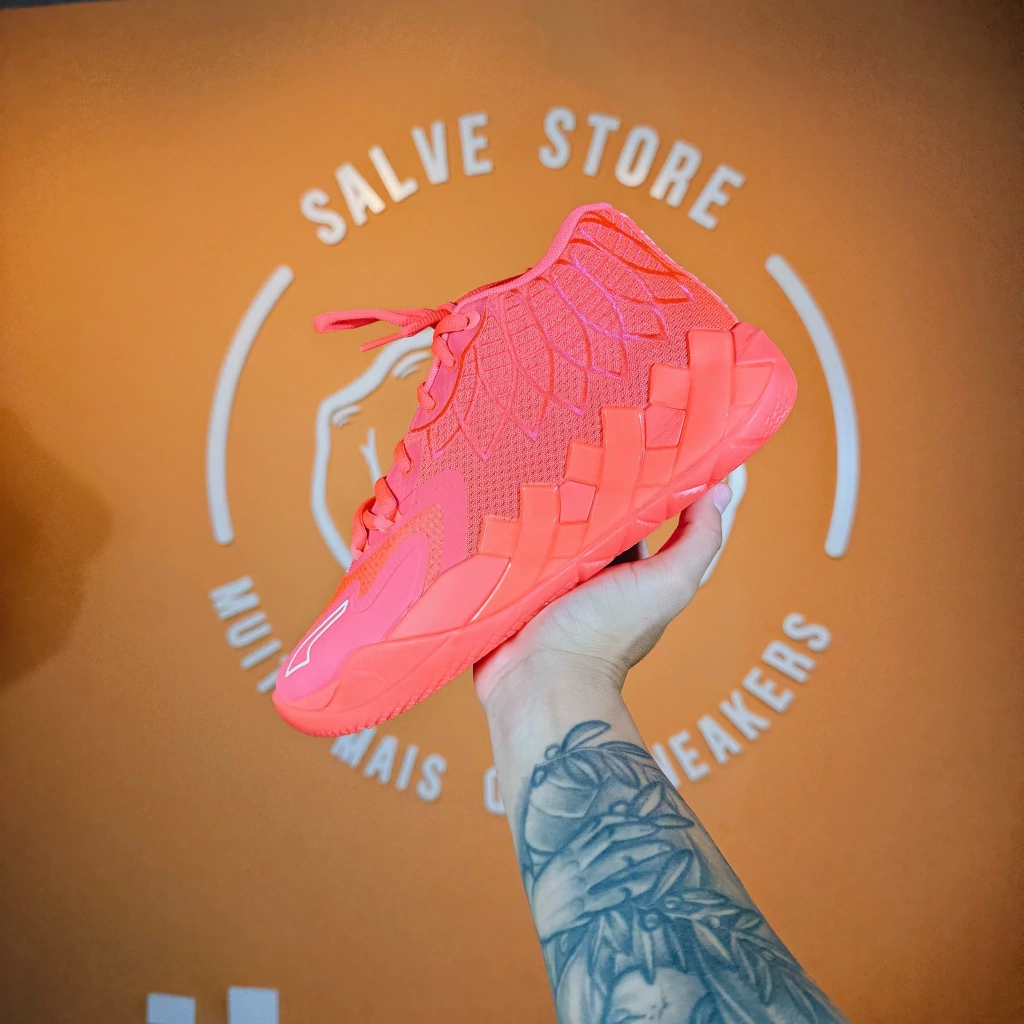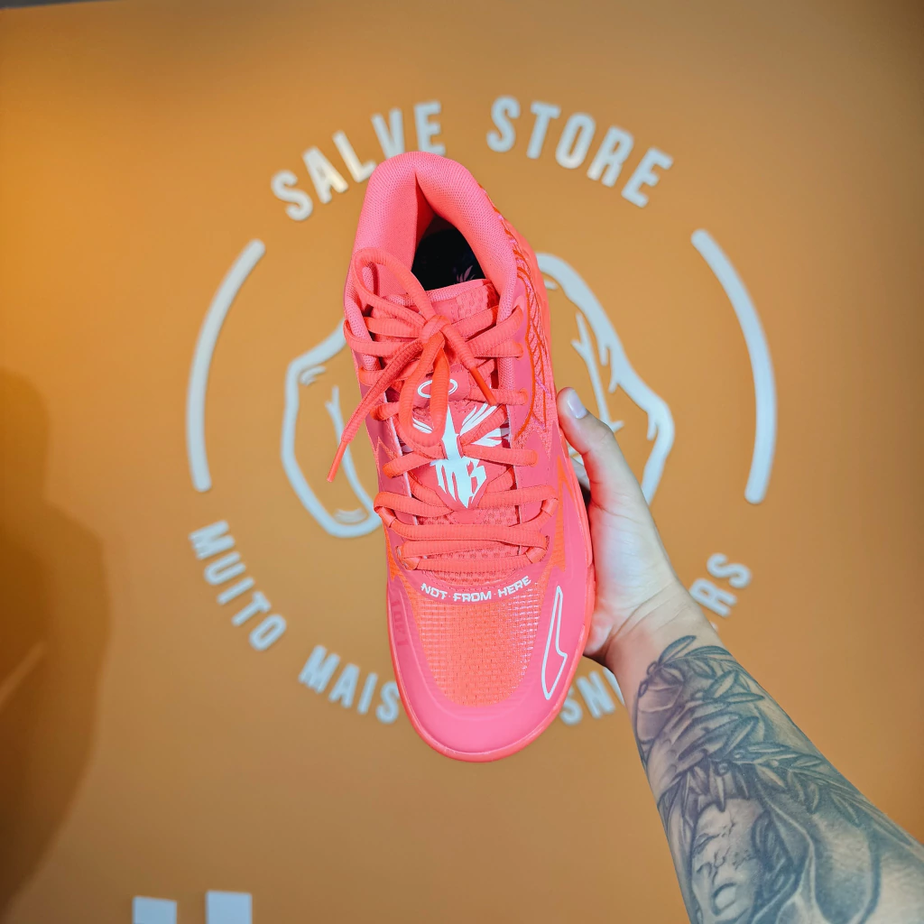 Inspirado na energia e criatividade de LaMelo, o MB.01 destaca-se pelo cabedal em tons de rosa vibrante, homenageando a campanha de prevenção ao câncer de mama. O acabamento premium e as linhas futuristas tornam o sneaker uma escolha perfeita para quem busca unir propósito, conforto e autenticidade no visual.