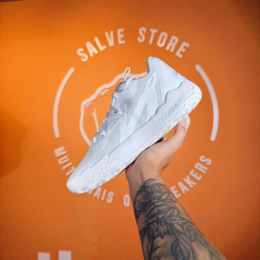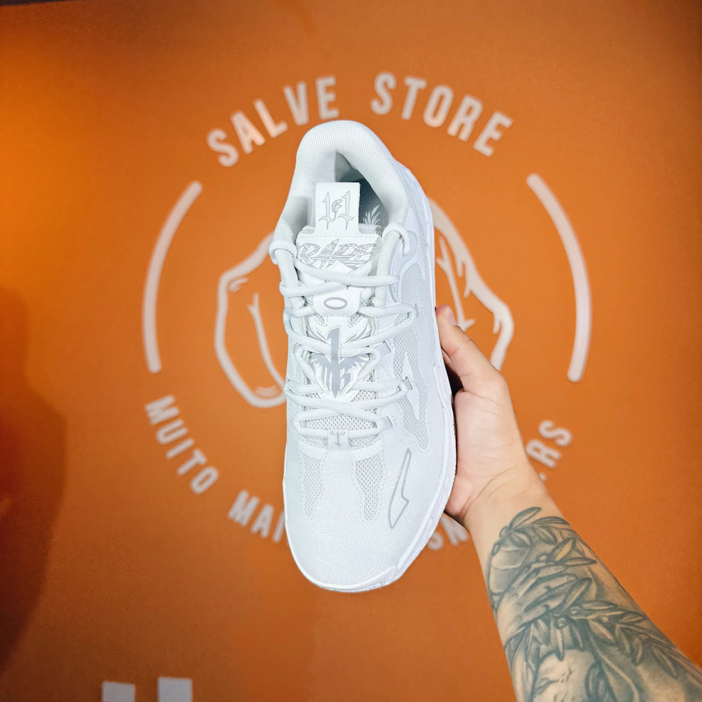O cabedal branco, confeccionado em materiais de alta qualidade, entrega leveza e respirabilidade, enquanto os detalhes exclusivos da collab com LaMelo Ball garantem personalidade única ao modelo. A entressola com tecnologia avançada proporciona excelente amortecimento e retorno de energia a cada passo, ideal para quem não abre mão de conforto e performance.